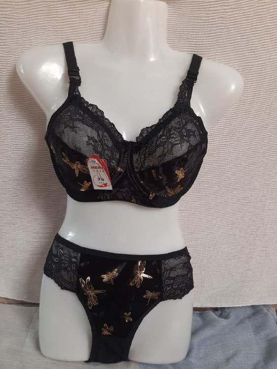 ست شورت و سوتین مخمل مشکی طلا کوب